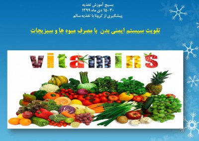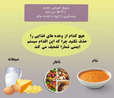 رعایت الگوی غذایی سالم در شرایط عادی لازمه برخورداری از سلامت است،ولی در بحران هایی مانند کرونا ،تبعیت از یک الگوی تغذیه ای سالم یکی از مهم ترین اساسی ترین عوامل در تقویت سیستم ایمنی وحفظ سلامت محسوب می شود.افراد مبتلا به بیماری های غیرواگیر از جمله بیماری های قلبی-عروقی،کبدی،پرفشاری خون،دیابت ،آسم ومشکلات تنفسی بیماری های سرطانی ومبتلایان به اضافه وزن وچاقی بیشتر مستعد ابتلا به کرونا هستند.
